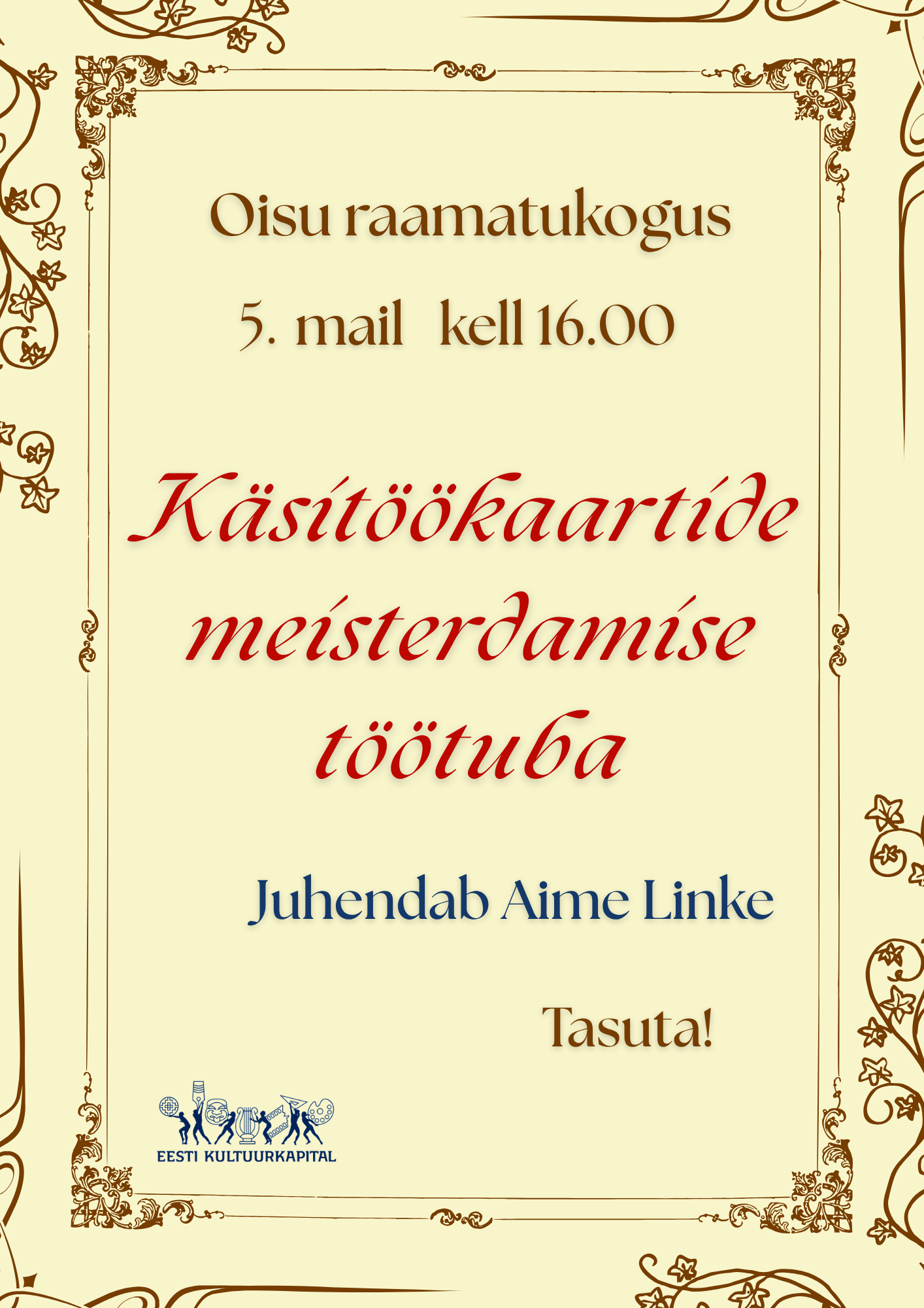 Kui soovid raamatu laenutamise tähtaega pikendada, siis helistada tel 385 7368 või saada meile sõnum siit!